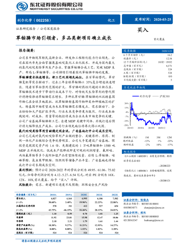 【东北证券】【20200325】草铵膦市场引领者,多品类新项目确立成长-31页 行业研究