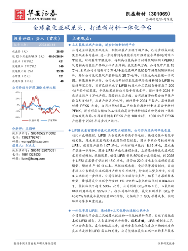 【华安证券】【20230314】全球氯化亚砜龙头,打造新材料一体化平台-46页 行业研究