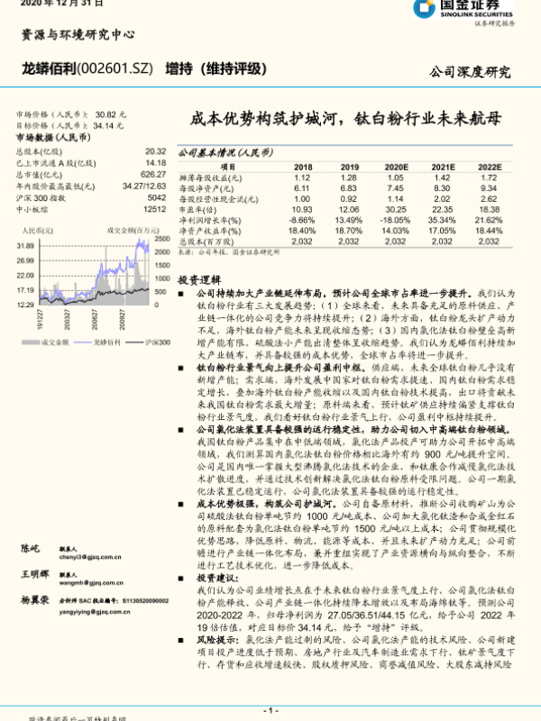 【国泰君安证券】【20210210】龙蟒佰利深度报告:成本为王,景气向上-32页 行业研究