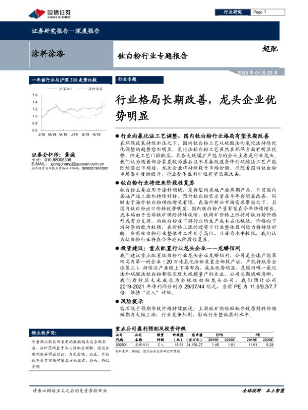 【国信证券】【20200123】钛白粉行业专题报告:行业格局长期改善,龙头企业优势明显-30页 行业研究