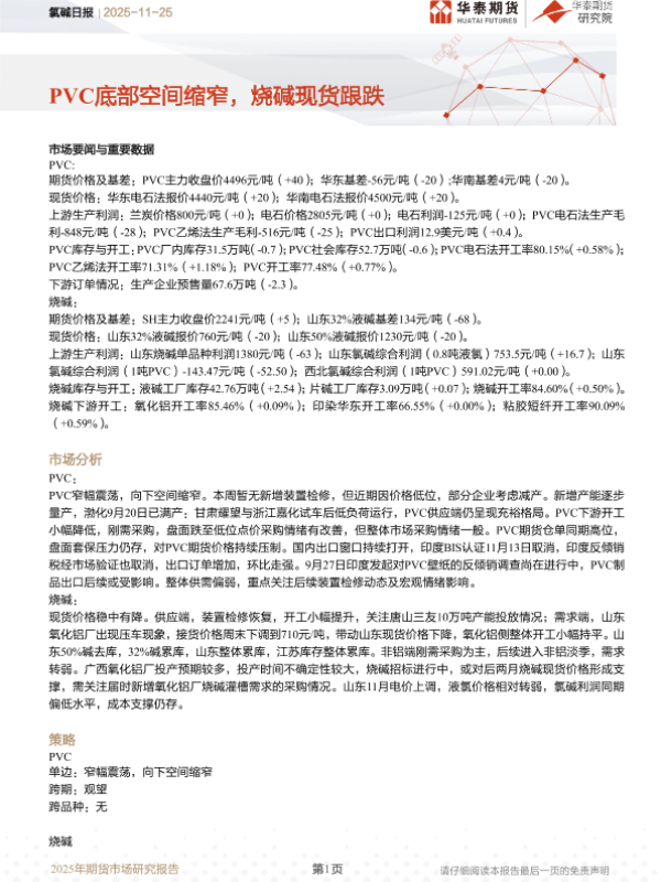 【华泰期货】【202511】PVC底部空间缩窄,烧碱现货跟跌-12页 证券期货研究报告