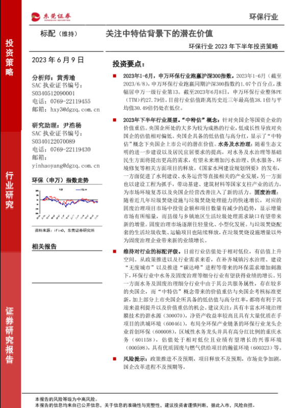 【东莞证券】【20230609】环保行业2023年下半年投资策略:关注中特估背景下的潜在价值-28页 行业研究