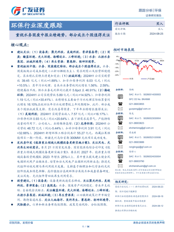 【广发证券】【20240825】重视水务固废中报业绩趋势,部分成长个股值得关注-14页 行业研究