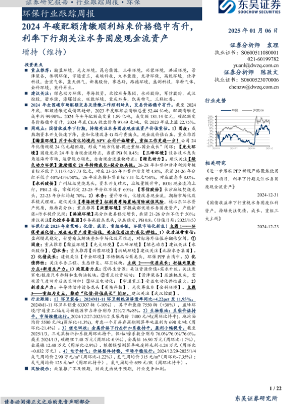 【东吴证券】【20250106】2024年碳配额清缴顺利结束价格稳中有升,利率下行期关注水务固废现金流资产-22页 行业研究