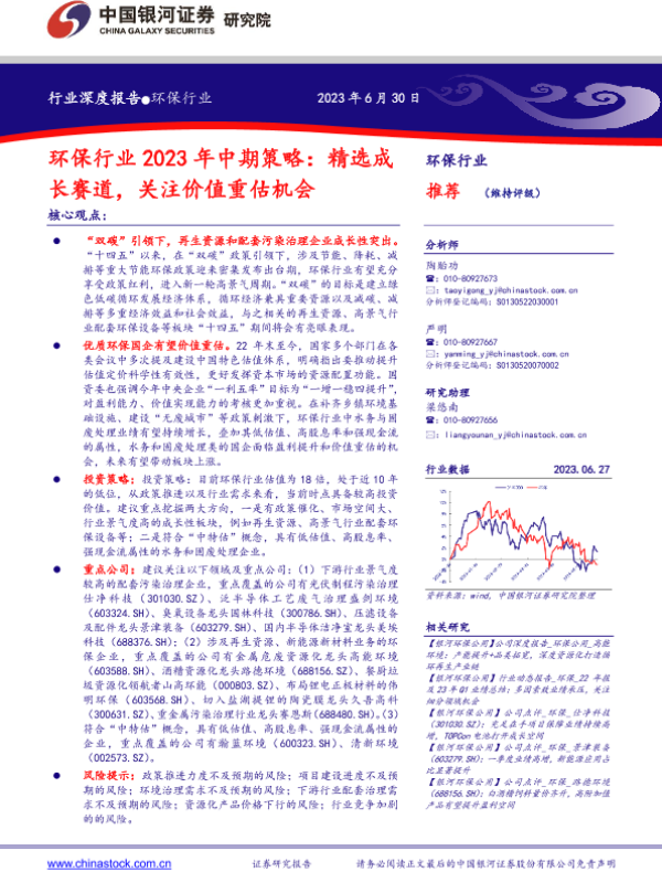 【银河证券】【20230630】环保行业2023年中期策略:精选成长赛道,关注价值重估机会-34页 行业研究