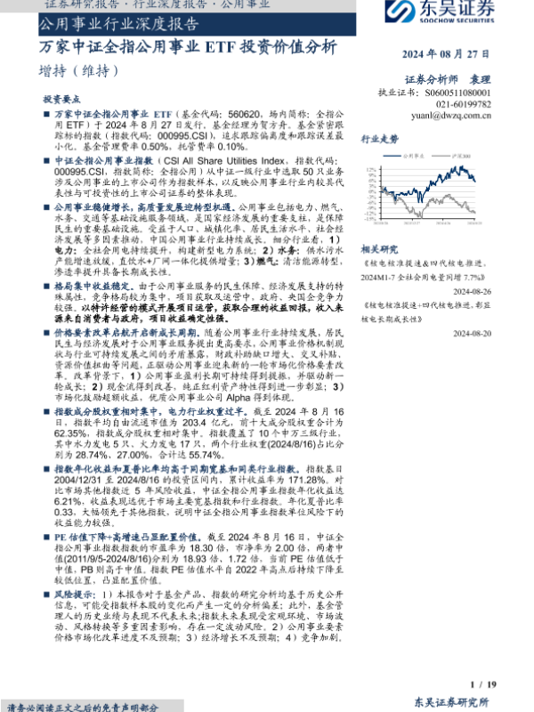 【东吴证券】【20240827】公用事业行业深度报告-万家中证全指公用事业ETF投资价值分析-19页 行业研究