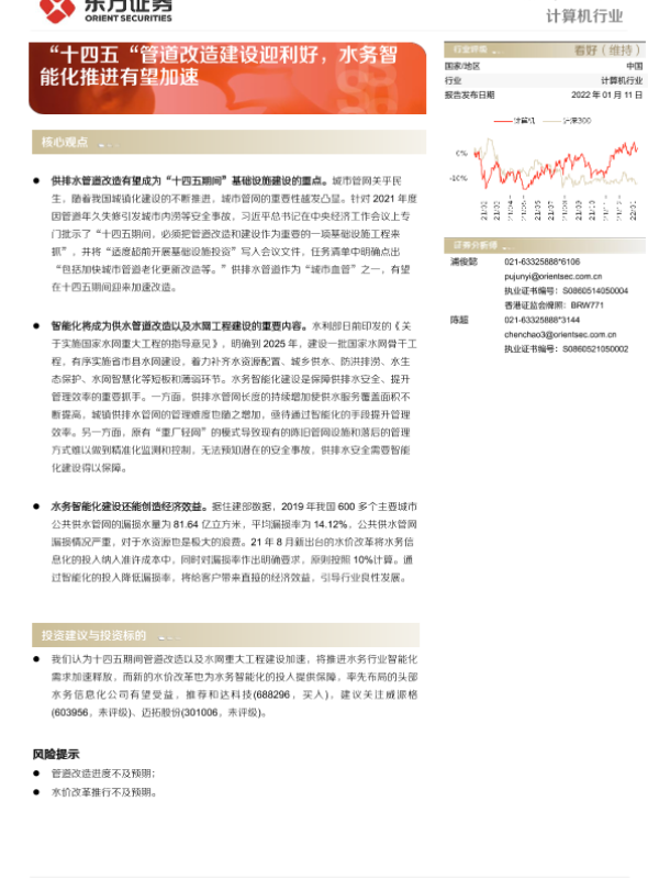 【东方证券】【20220111】计算机行业动态跟踪:“十四五”管道改造建设迎利好,水务智能化推进有望加速-3页 行业研究