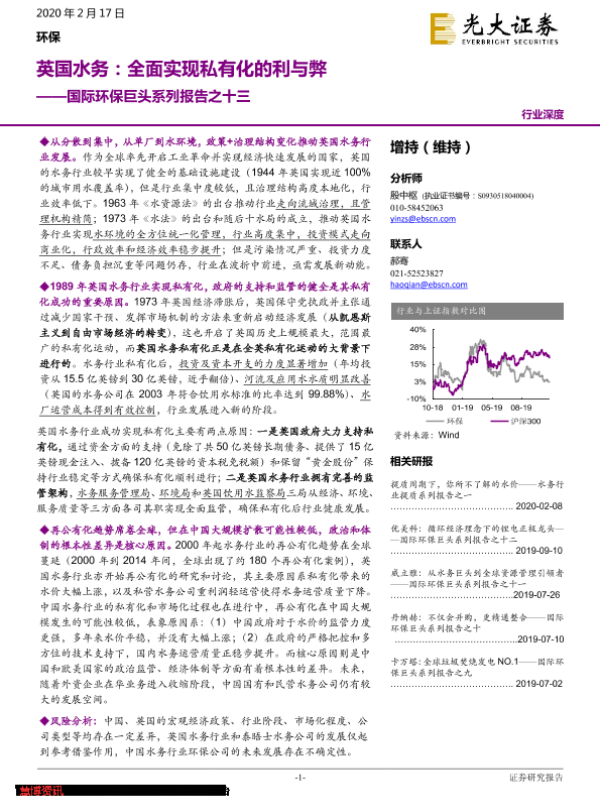 【光大证券】【20200217】国际环保巨头系列报告之十三:英国水务:全面实现私有化的利与弊-27页 行业研究