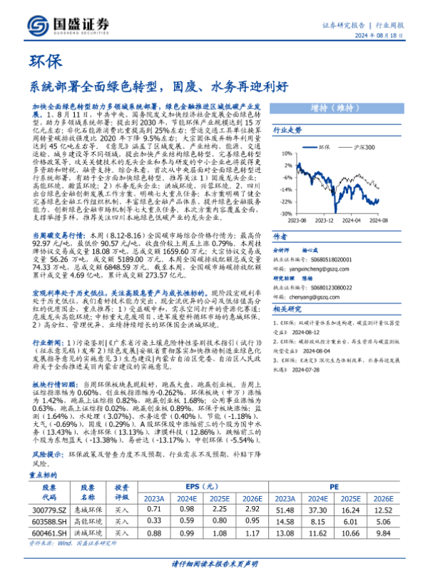 【国盛证券】【20240818】环保行业周报:系统部署全面绿色转型,固废、水务再迎利好-14页 行业研究