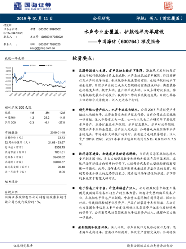 【国海证券】【20190111】水声专业全覆盖,护航远洋海军建设-20页 行业研究