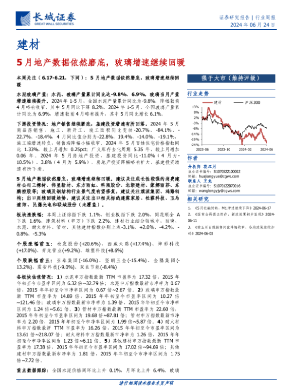 【长城证券】【20240624】5月地产数据依然磨底,玻璃增速继续回暖-19页 行业研究