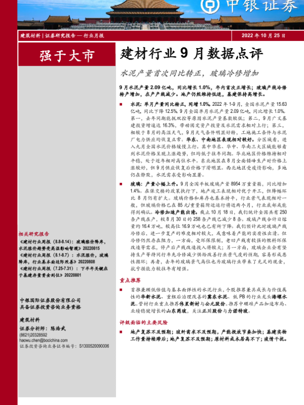 【中银证券】【20221025】建材行业9月数据点评:水泥产量首次同比转正,玻璃冷修增加-11页 行业研究