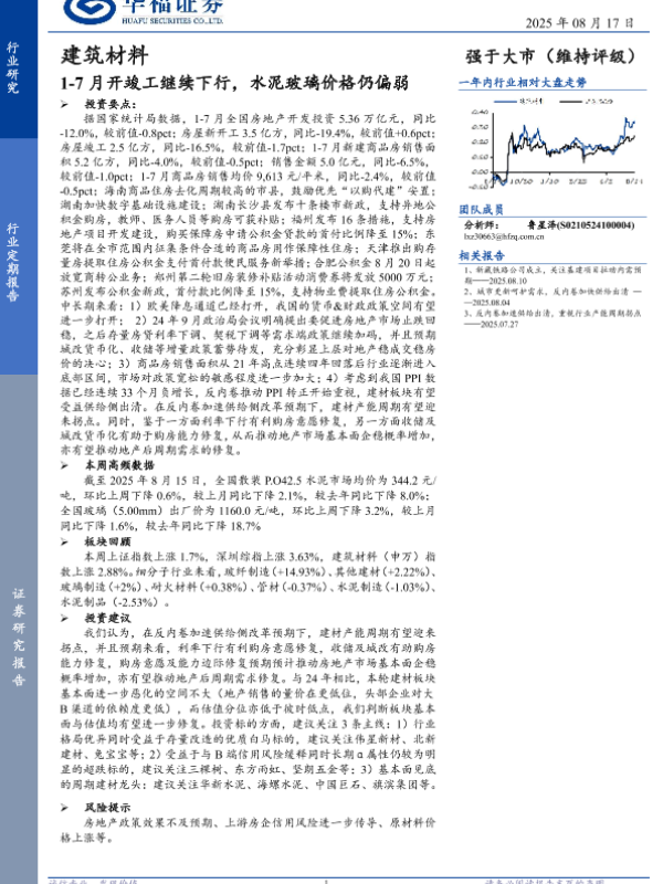 【华福证券】【202508】1-7月开竣工继续下行,水泥玻璃价格仍偏弱-11页 证券期货研究报告