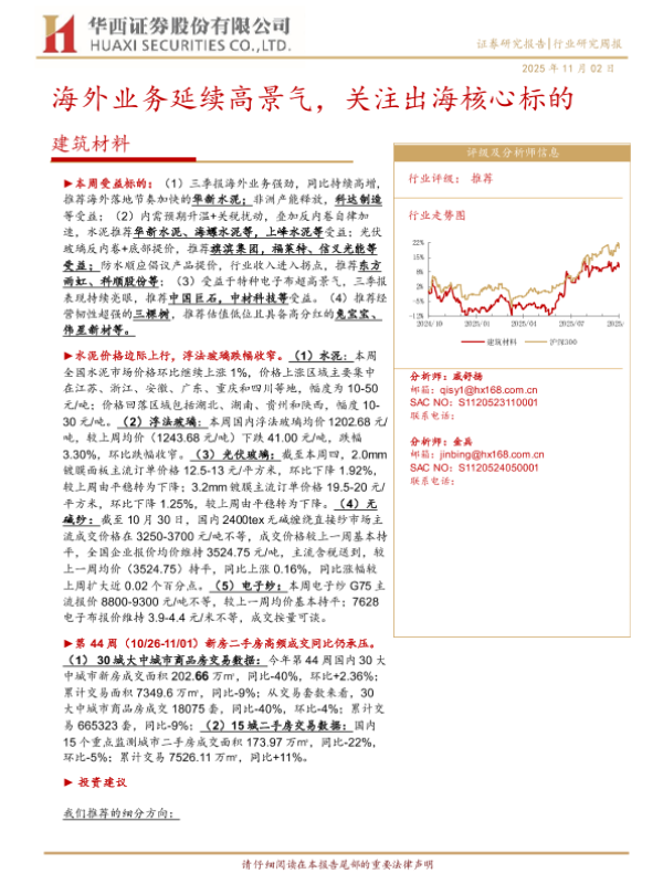 【华西证券】【202511】建筑材料行业:海外业务延续高景气,关注出海核心标的-21页 证券期货研究报告