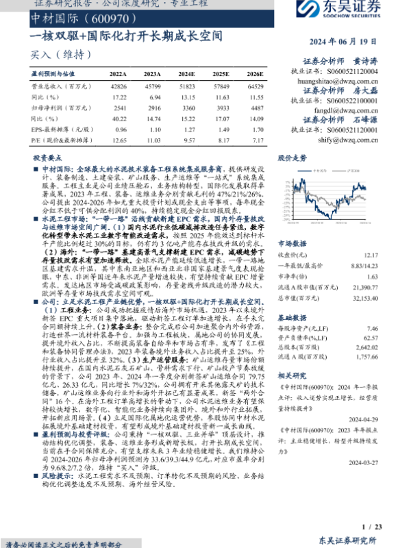 【东吴证券】【20240619】中材国际(600970):一核双驱+国际化打开长期成长空间-23页 行业研究