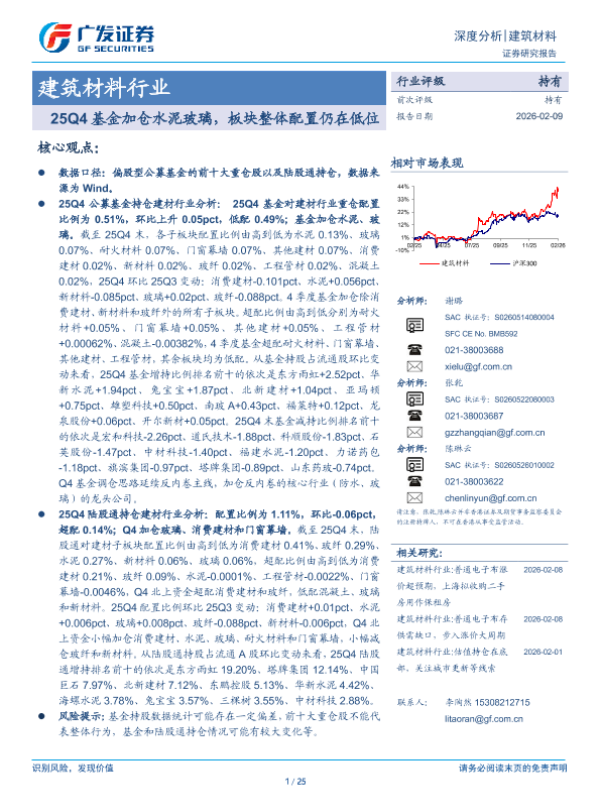 【广发证券】【202602】25Q4基金加仓水泥玻璃,板块整体配置仍在低位-25页 证券期货研究报告