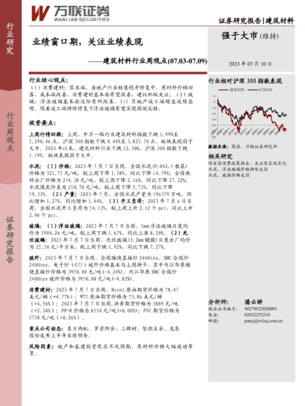 【万联证券】【20230710】建筑材料行业周观点:业绩窗口期,关注业绩表现-19页 行业研究