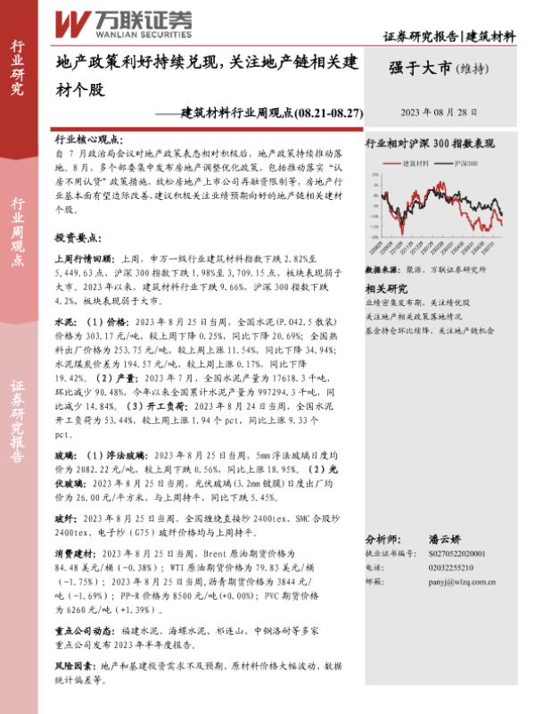 【万联证券】【20230828】建筑材料行业周观点:地产政策利好持续兑现,关注地产链相关建材个股-23页 行业研究