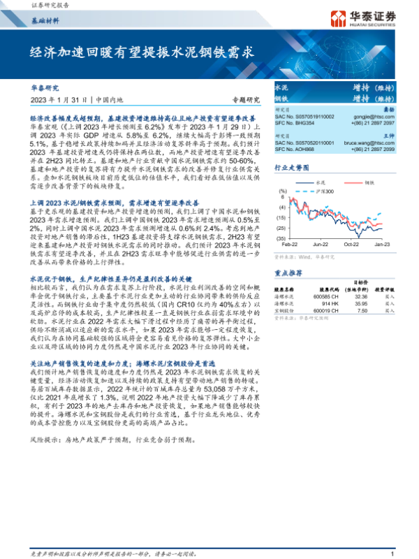 【华泰证券】【20230131】基础材料专题研究:经济加速回暖有望提振水泥钢铁需求-11页 行业研究