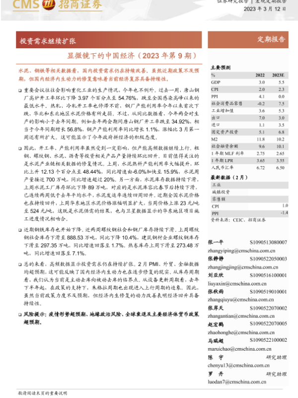 【海通证券】【20230312】显微镜下的中国经济(2023年第9期):投资需求继续扩张-30页 行业研究