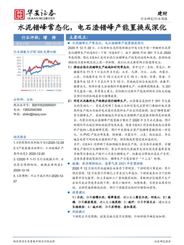 【华安证券】【20210103】建材行业周报:水泥错峰常态化,电石渣错峰产能置换或深化-16页 行业研究