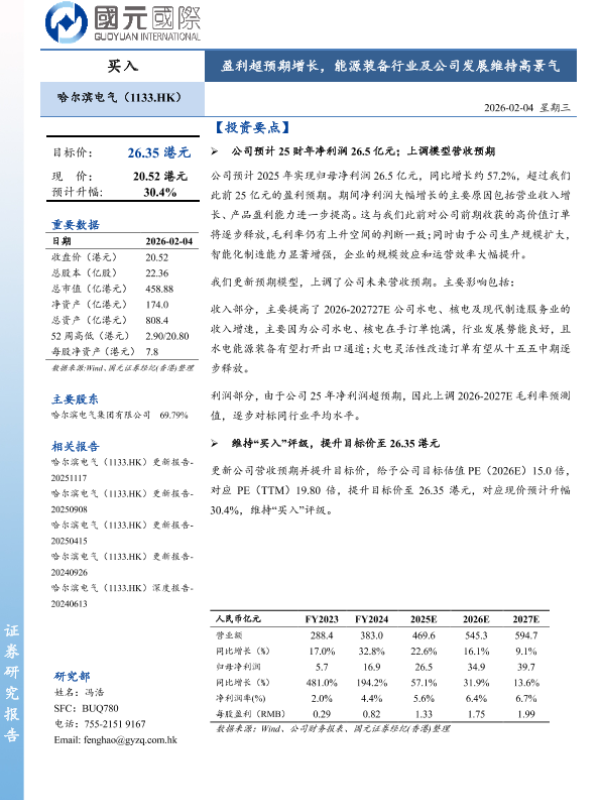 【国元国际】【202602】哈尔滨电气(1133.HK)更新报告-5页 证券期货研究报告