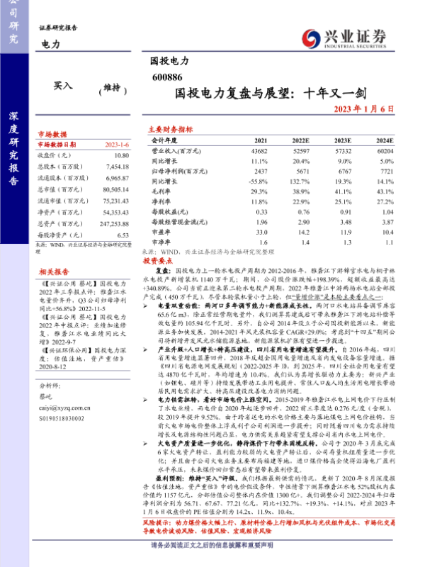 【兴业证券】【20230106】国投电力复盘与展望:十年又一剑-30页 行业研究