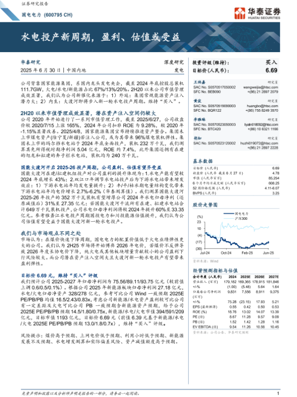 【华泰证券】【20250630】国电电力(600795)水电投产新周期,盈利、估值或受益-34页 公司研究