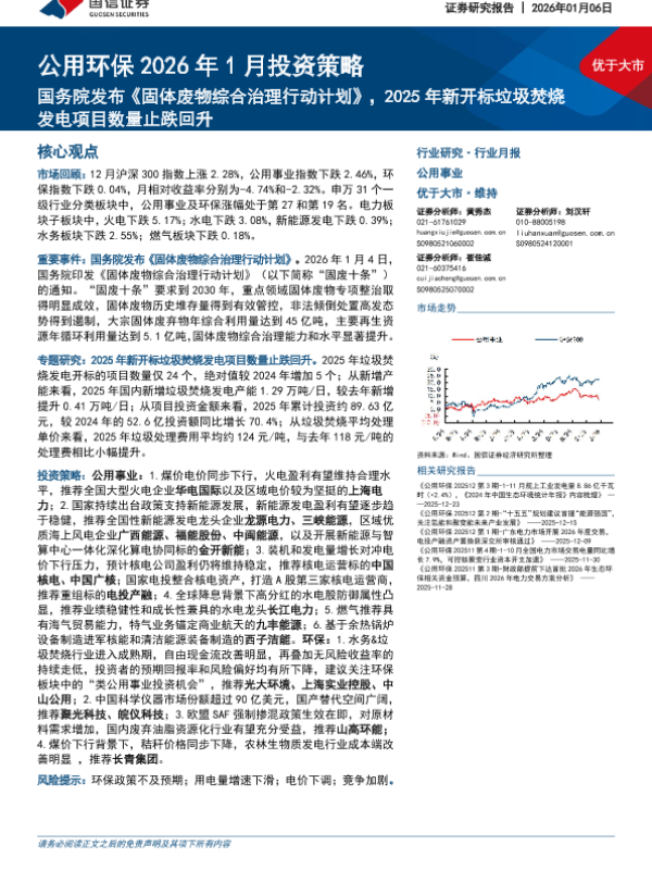 【国信证券】【202601】公用环保2026年1月投资策略:国务院发布《固体废物综合治理行动计划》,2025年新开标垃圾焚烧发电项目数量止跌回升-31页 证券期货研究报告