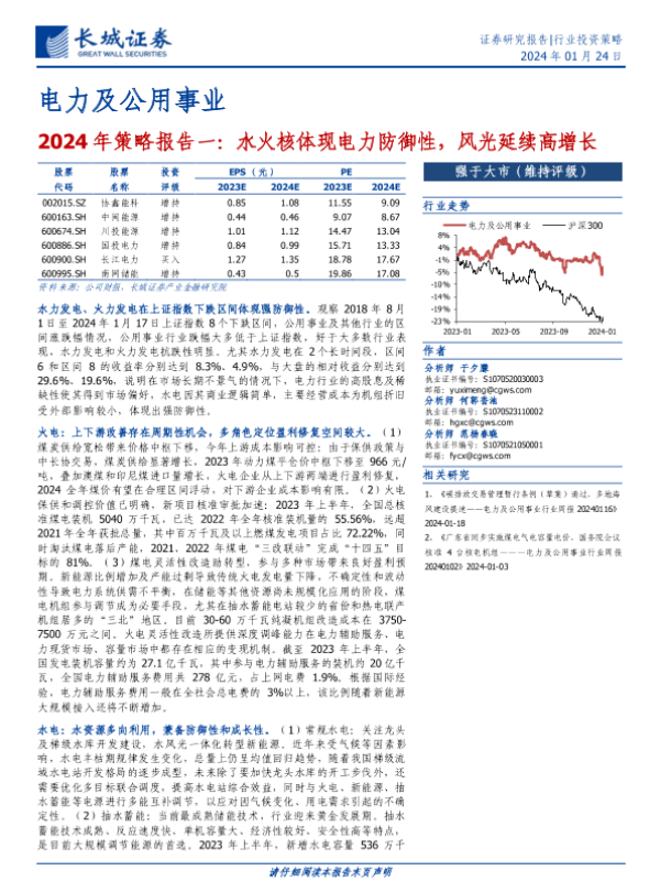 长城证券 电力热力燃气水生产 2024年 PDF 2.8 MB