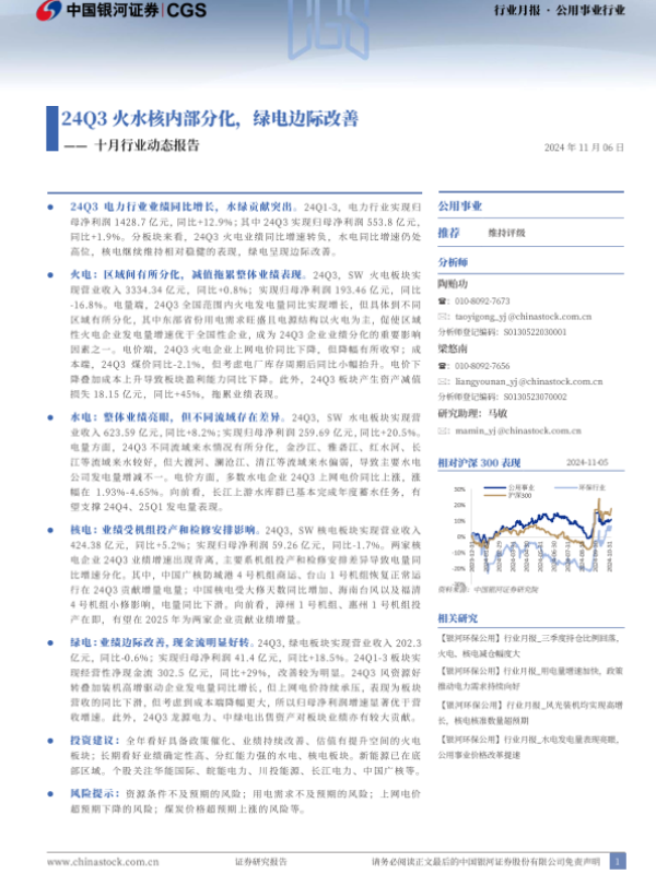 【银河证券】【20241106】24Q3火水核内部分化,绿电边际改善-26页 行业研究