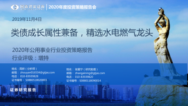 【国泰君安证券】【20191104】2020年公用事业行业投资策略报告:类债成长属性兼备,精选水电燃气龙头-40页 行业研究