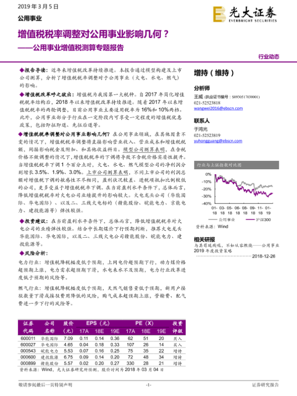 【光大证券】【20190305】公用事业增值税测算专题报告:增值税税率调整对公用事业影响几何?-13页 行业研究