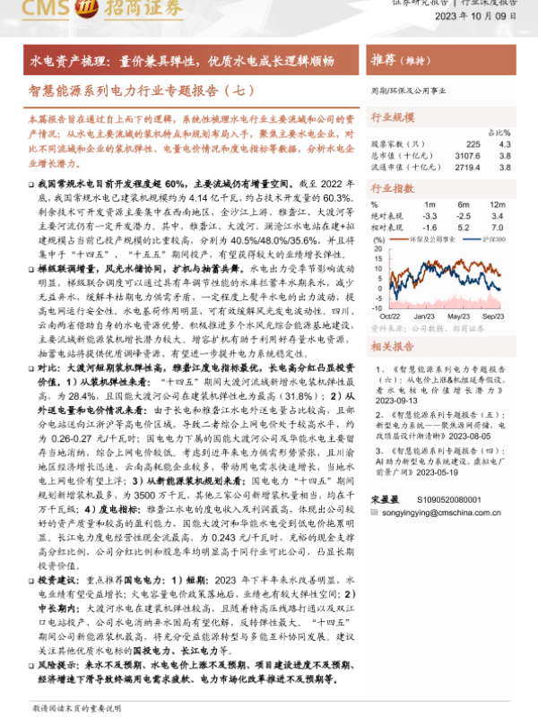 【海通证券】【20231009】智慧能源系列电力行业专题报告(七):水电资产梳理:量价兼具弹性,优质水电成长逻辑顺畅-29页 行业研究