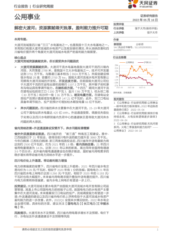【天风证券】【20220516】解密大渡河:资源禀赋得天独厚,盈利能力提升可期-16页 行业研究