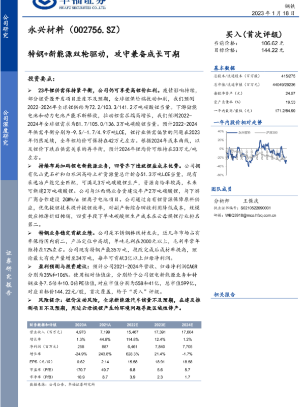 【华福证券】【20230118】永兴材料-002756.SZ-特钢+新能源双轮驱动,攻守兼备成长可期-34页 行业研究