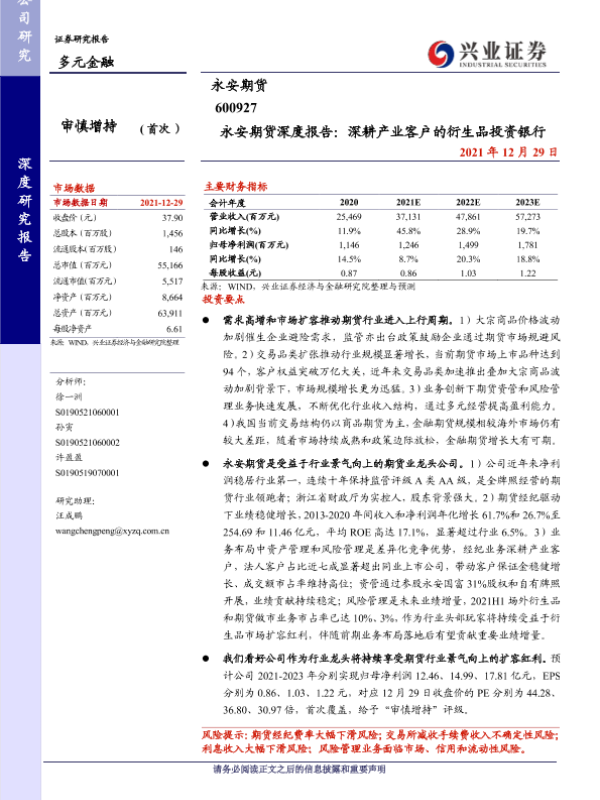 【兴业证券】【20211229】永安期货深度报告:深耕产业客户的衍生品投资银行-27页 行业研究