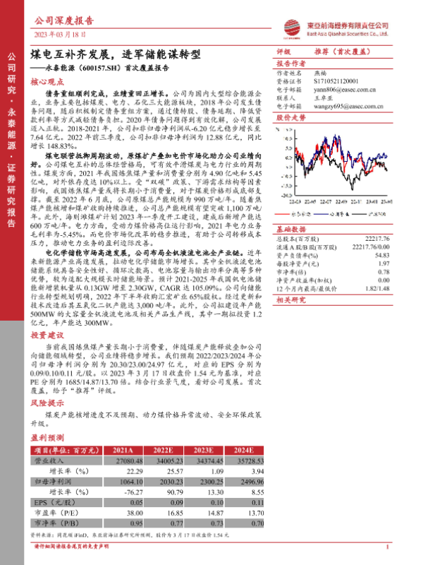 【东亚前海证券】【20230318】20230318-东亚前海证券-永泰能源-600157.SH-首次覆盖报告:煤电互补齐发展,进军储能谋转型-31页 行业研究