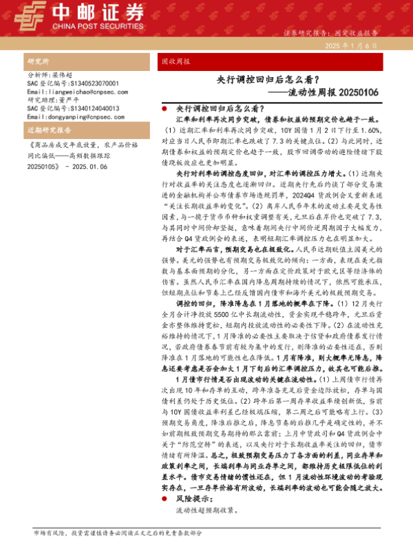 【中邮证券】【20250106】流动性:央行调控回归后怎么看?-20页 行业研究