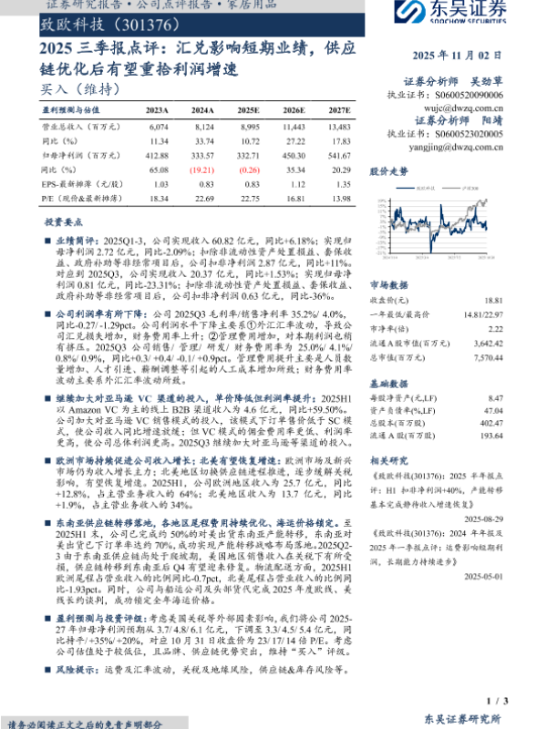 【东吴证券】【202511】2025三季报点评:汇兑影响短期业绩,供应链优化后有望重拾利润增速-3页 证券期货研究报告