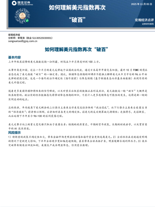 【国金证券】【202509】如何理解美元指数再次“破百”-6页 证券期货研究报告