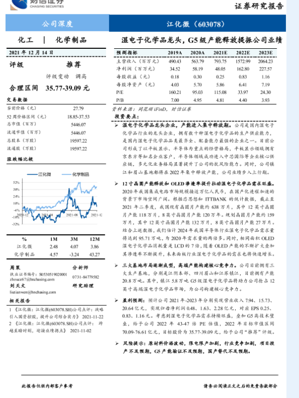 【财信证券】【20211214】湿电子化学品龙头,G5级产能释放提振公司业绩-24页 行业研究