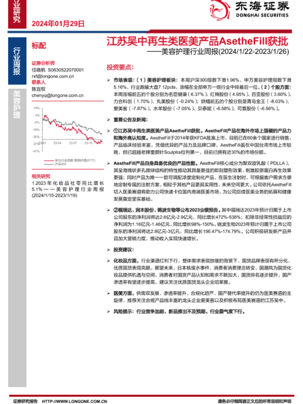 【东海证券】【20240129】江苏吴中再生类医美产品AsetheFill获批-10页 行业研究