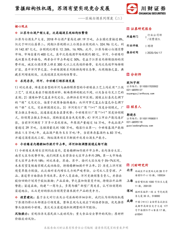 【川财证券】【20200417】紧握结构性机遇,苏酒有望实现竞合发展-30页 证券期货研究报告