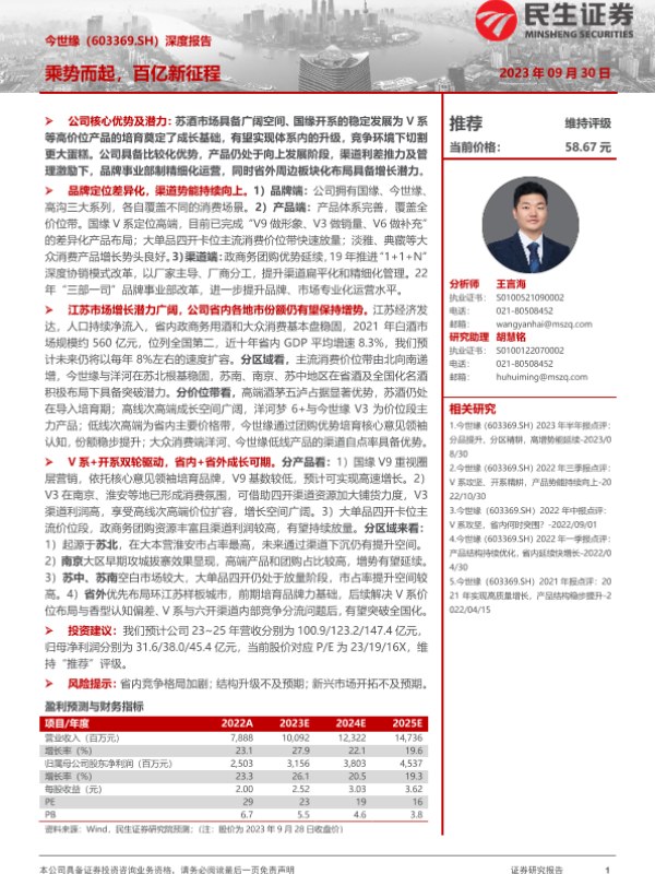 【民生证券】【20230930】20230930-民生证券-今世缘-603369.SH-深度报告:乘势而起,百亿新征程-38页 行业研究