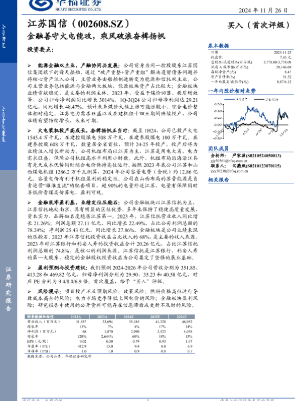 【华福证券】【20241126】江苏国信(002608)金融善守火电能攻,乘风破浪奋楫扬帆-17页 行业研究
