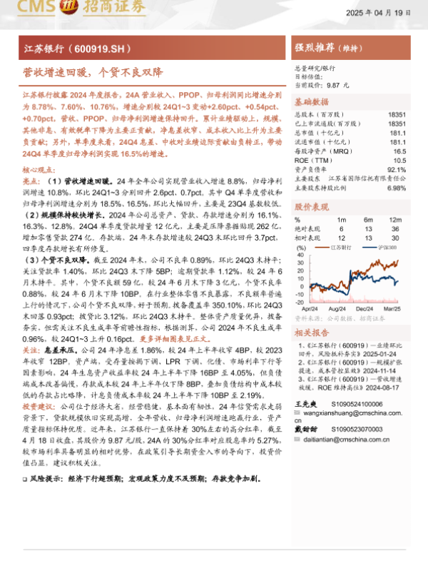 【海通证券】【20250419】江苏银行(600919)营收增速回暖,个贷不良双降-19页 公司研究