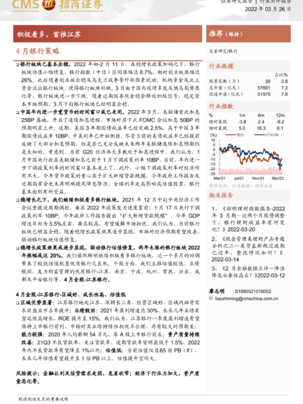 【海通证券】【20220326】4月银行策略:积极看多,首推江苏-3页 证券期货研究报告