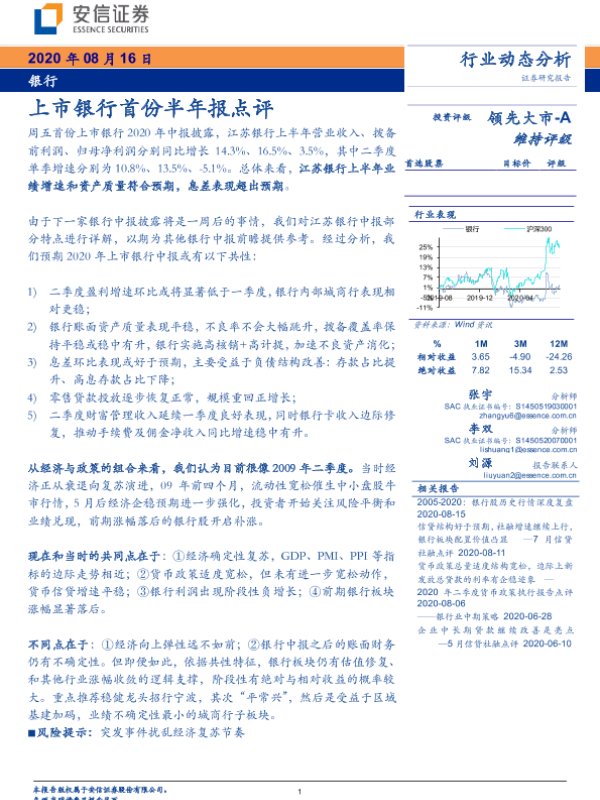 【安信证券】【20200816】上市银行首份半年报点评-8页 行业研究