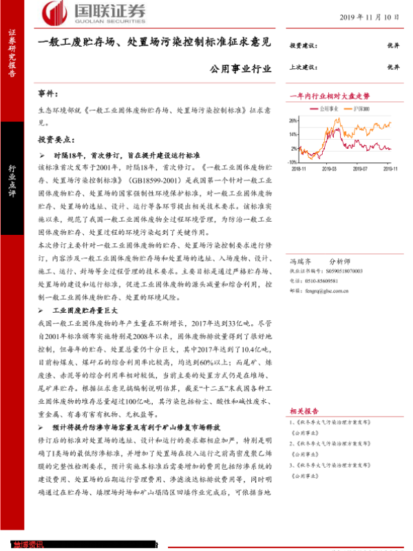 【国联证券】【20191110】一般工废贮存场、处置场污染控制标准征求意见-4页 行业研究
